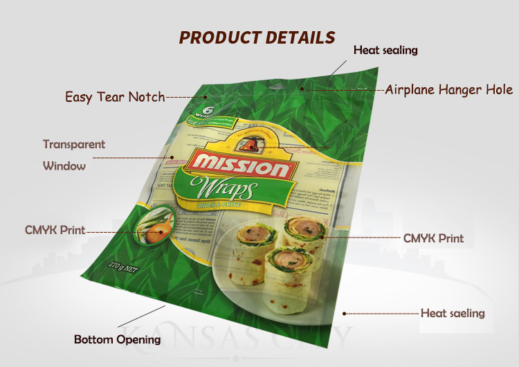 שקית אריזת חלבון ללחם שטוח עם טורטיה עם חלון Ziplock